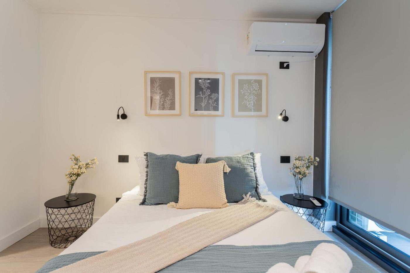 The air-conditioned apartment consists of 1 bedroom, a living room, a fully equipped kitchen with a dishwasher and a kettle, and 1 bathroom with a bath and a hair dryer. Towels and bed linen are provided in the apartment.